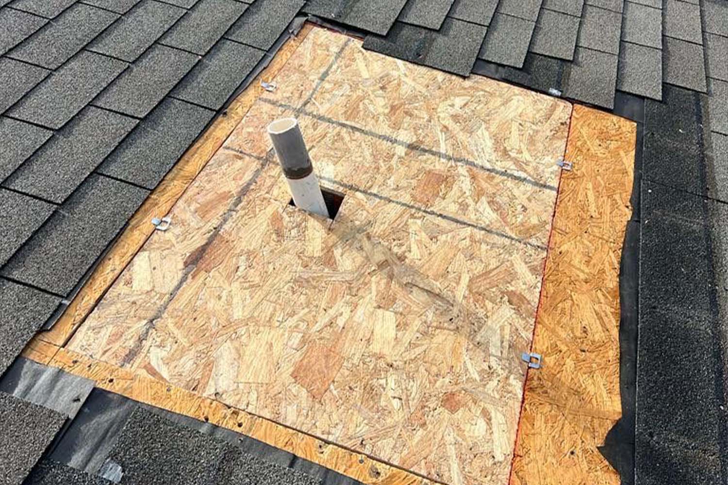 One source of roof damage that we often see is that caused by leaky pipes, vents, or satellite dishes. This is typically caused by a lack of maintenance and damaged or worn accessories. So what’s the best solution? We firmly believe that replacing leaky accessories is the only path forward, and we’ll uncover the decking to inspect the wood while we perform that job. Conducting regular maintenance on your roof is a great way to prevent these issues in the future.